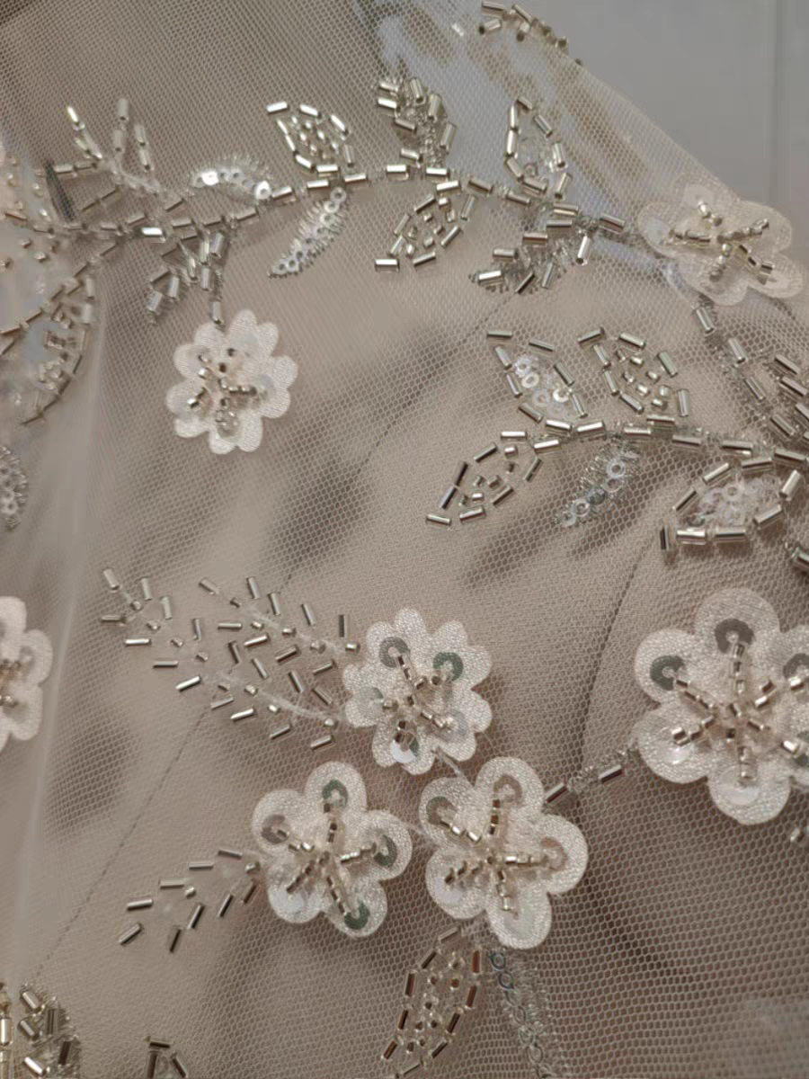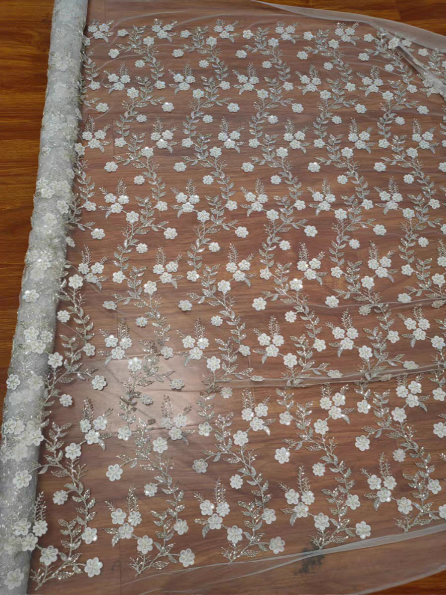 Exquisite sequin three-dimensional beading embroidery flower soft lace fabric wedding gauze mesh dress custom accessories lace