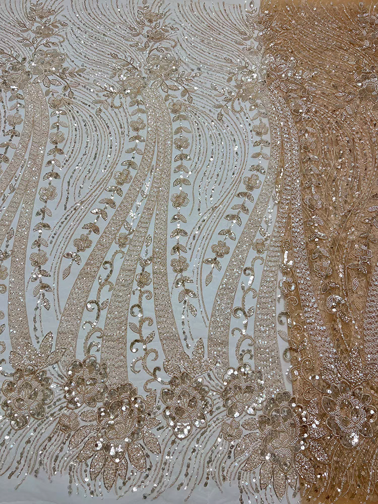 French white fabric heavy bead tube embroidery beading peony sequins embroidery fabric dress wedding dress cheongsam
