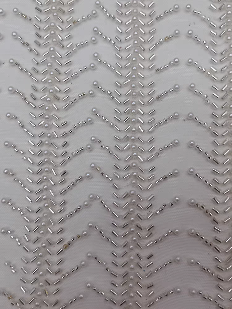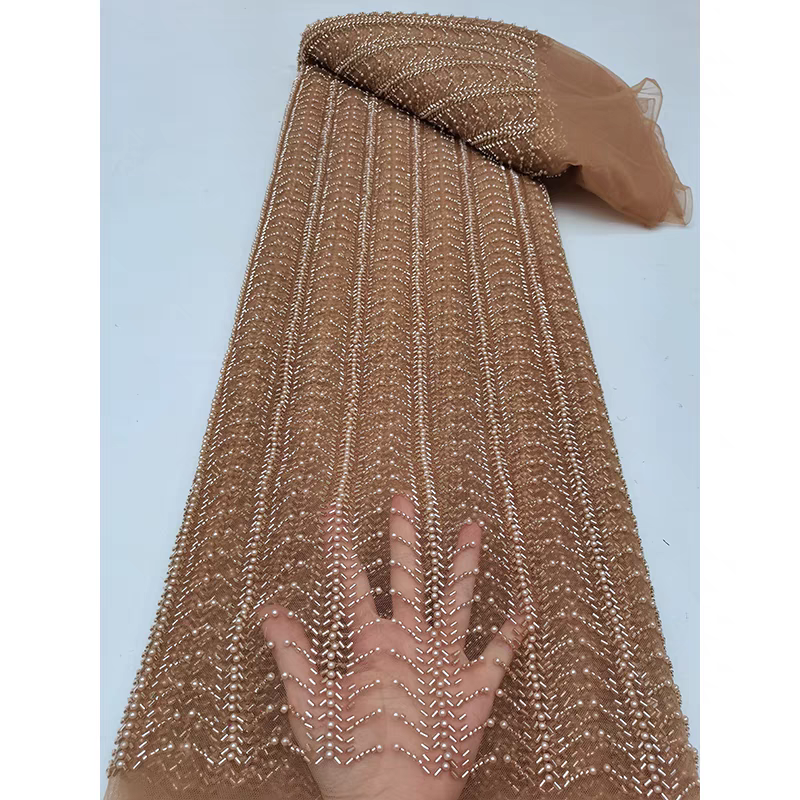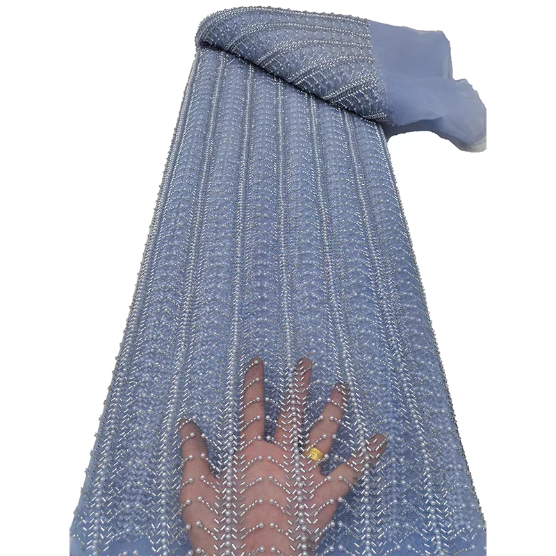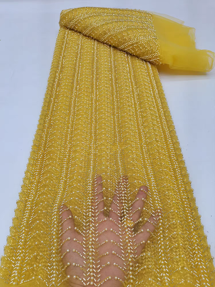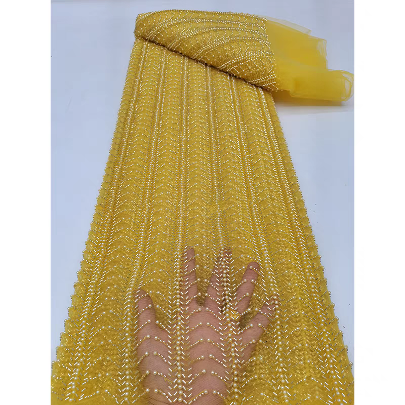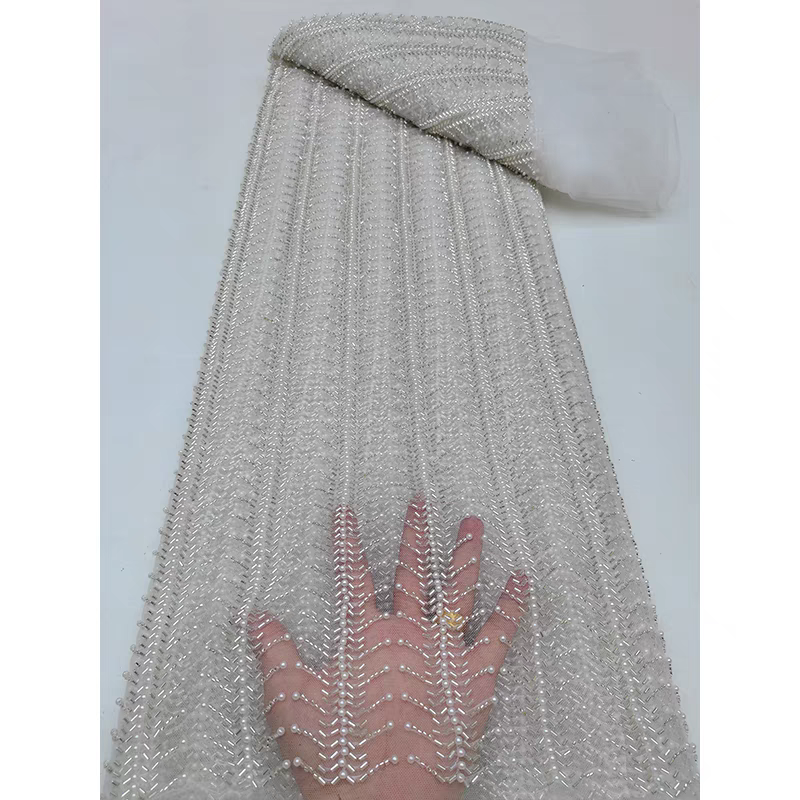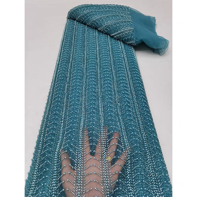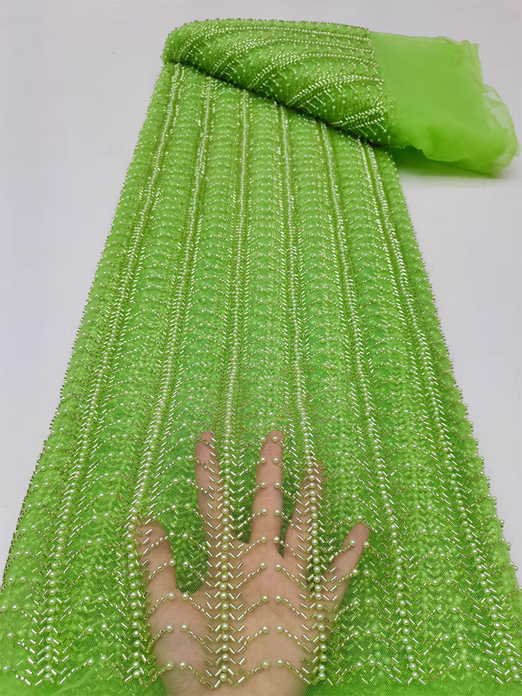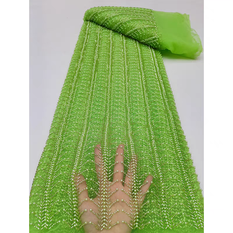 Green mesh fabric heavy bubble beads tube embroidery beaded stripes sequin embroidery fabric dress wedding dress cheongsam