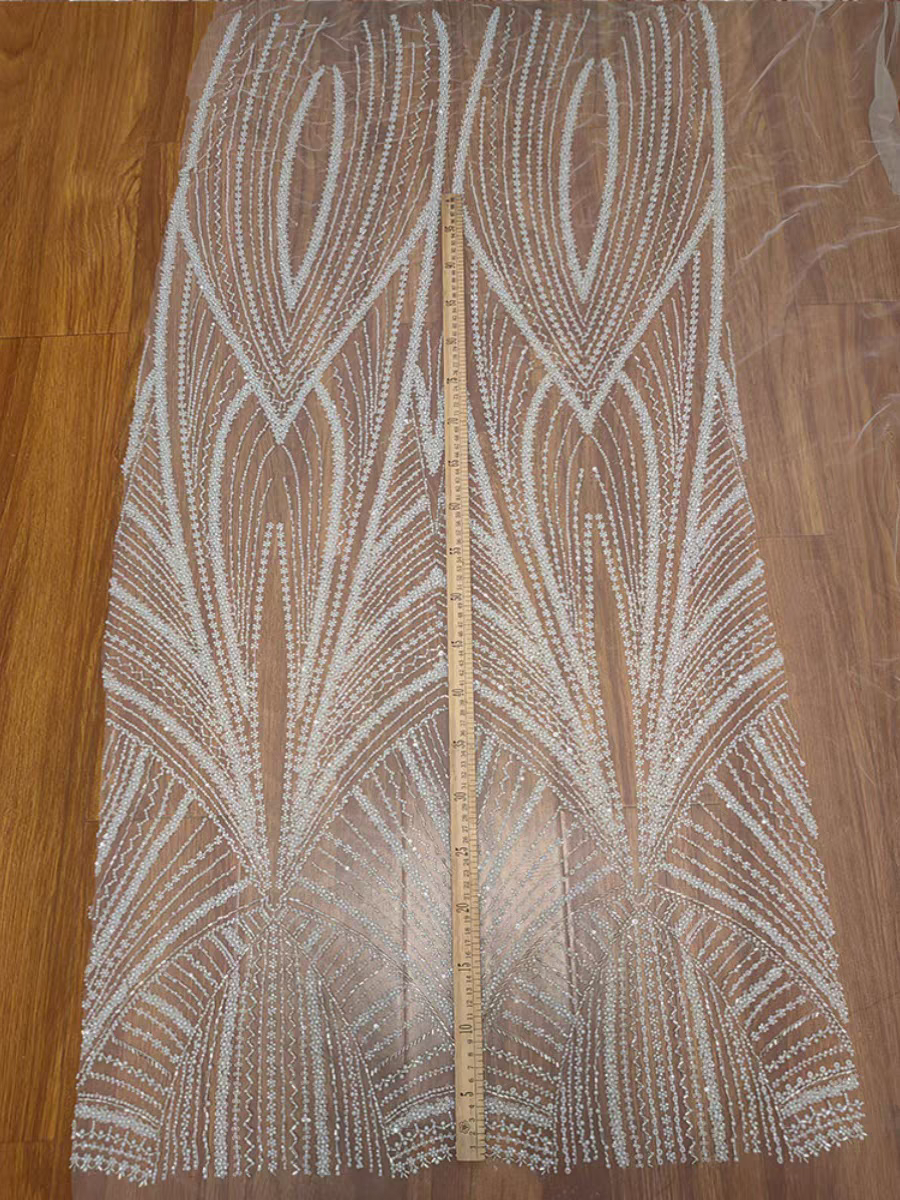 Heavy industry full white beaded lace wedding dress accessories clothing dress lace DIY handmade decorative fabric
