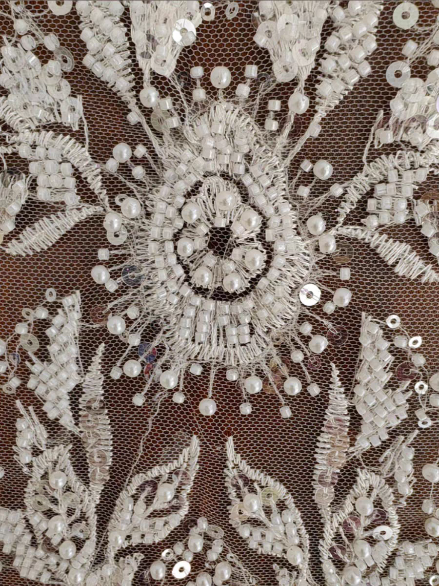 High quality heavy industry luxury nail embroidery silver sequin lace fabric wedding dress women's mesh dress DIY lace accessories