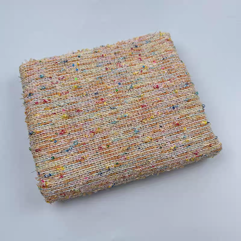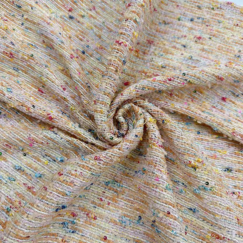 Imported small fragrance fabric, colorful beads, orange high-end custom fabric, designer style, handmade DIY customization