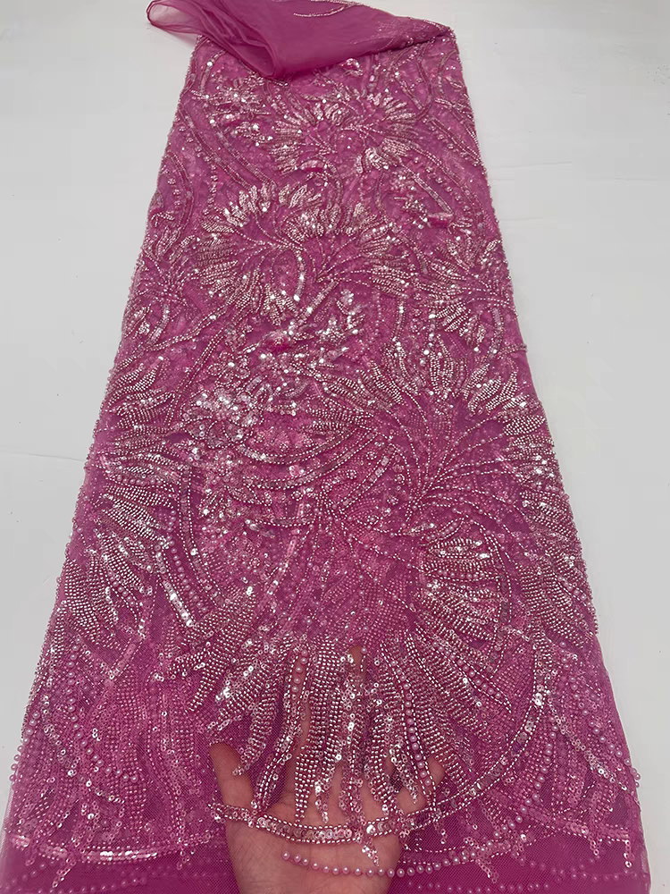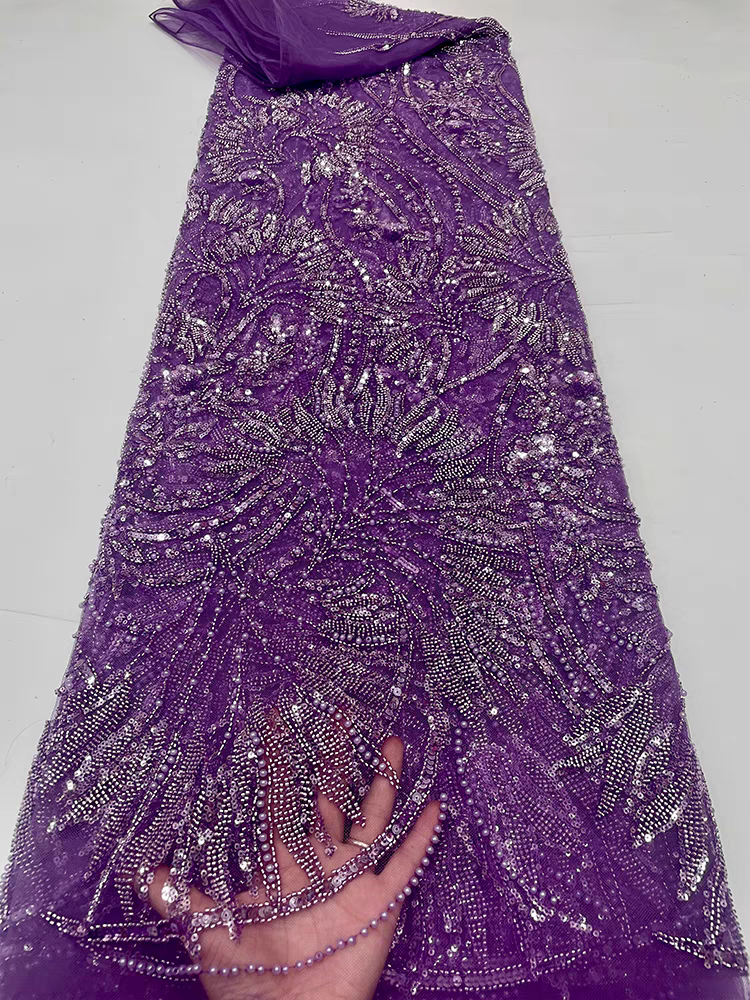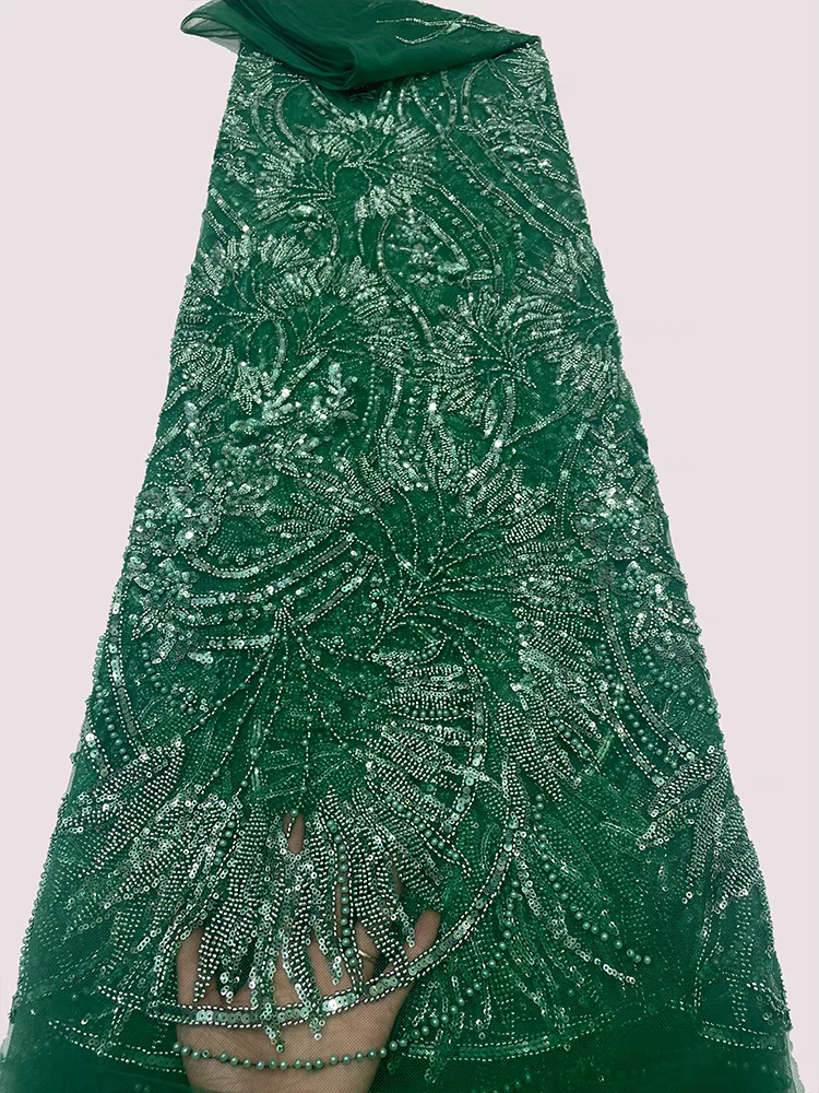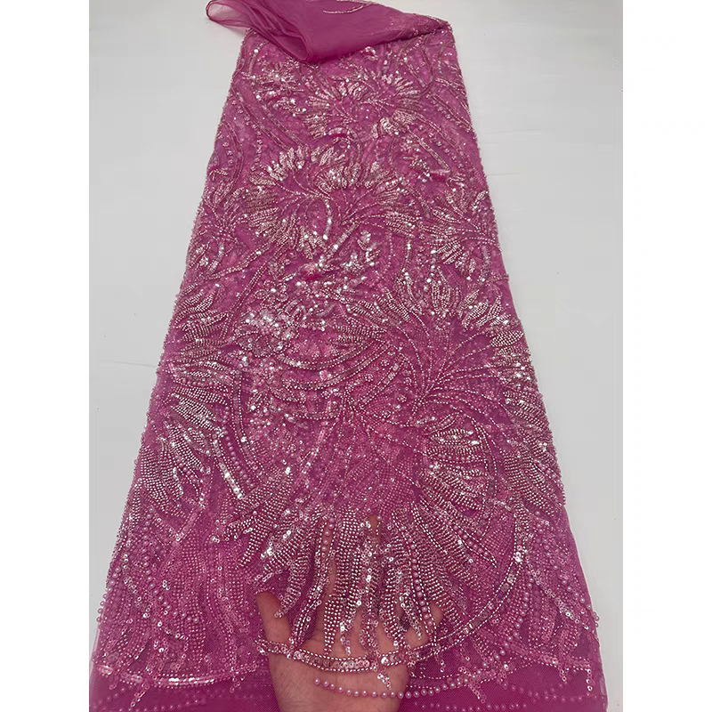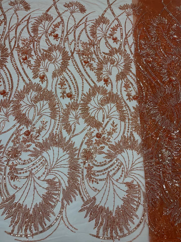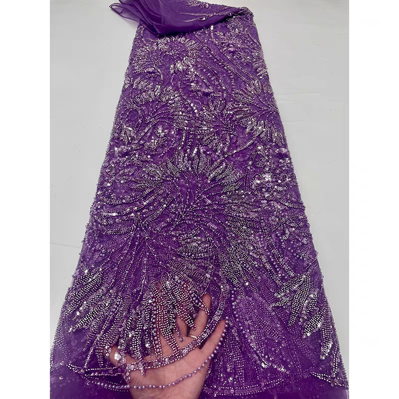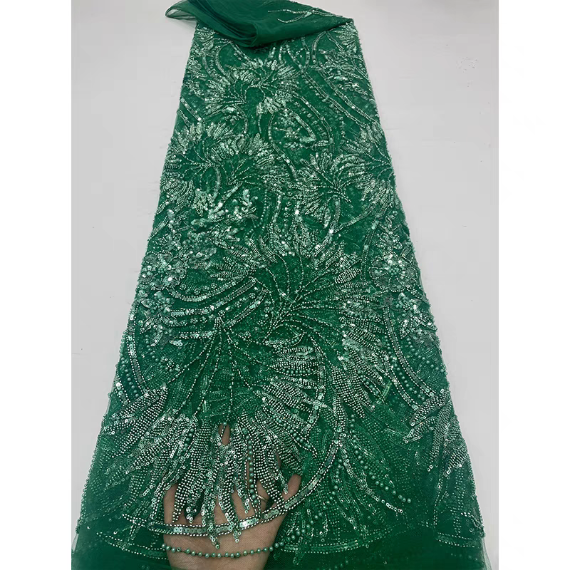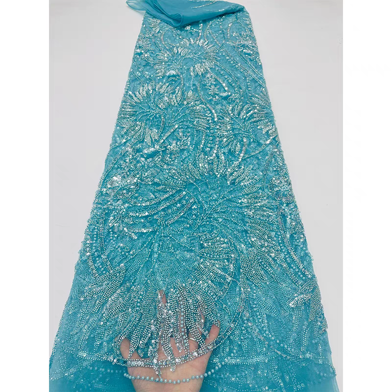 Lace fabric mesh embroidery fabric sequins beaded tube embroidery peacock feather dress wedding dress lace fabric5Y