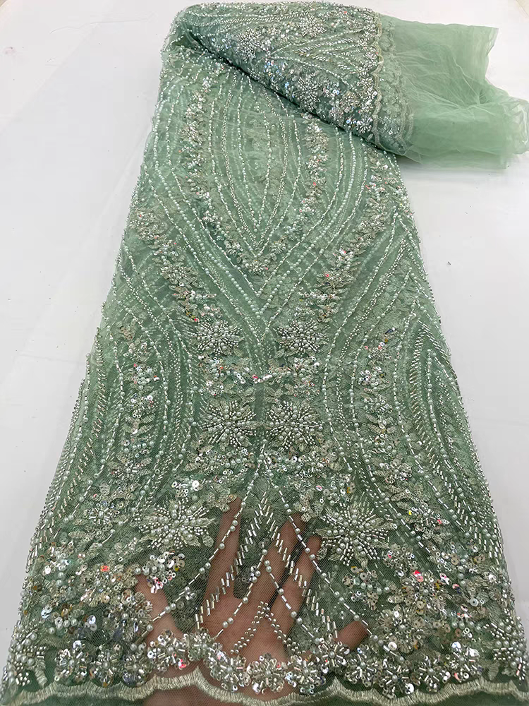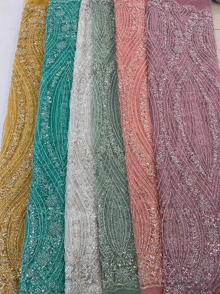 Lace mesh beaded tube embroidery sequins beaded Lolita embroidery fabric dress clothing fabric fiveyards
