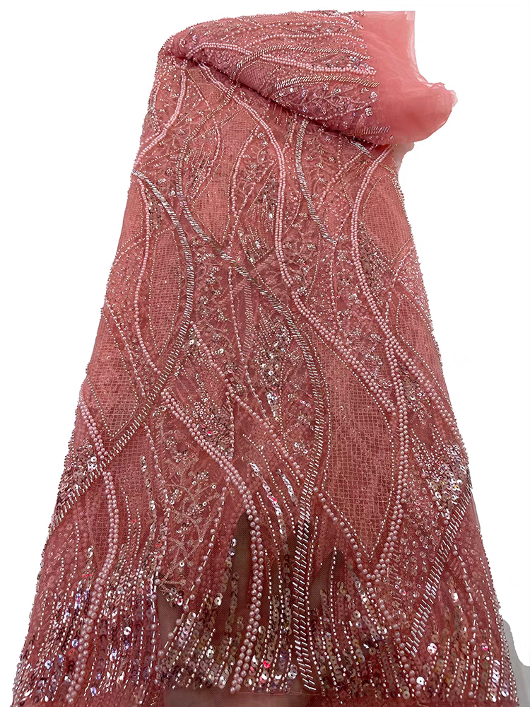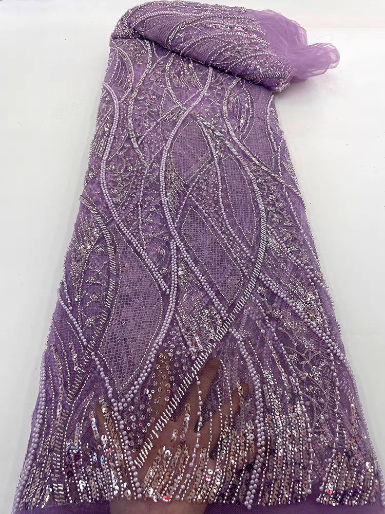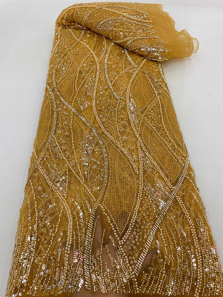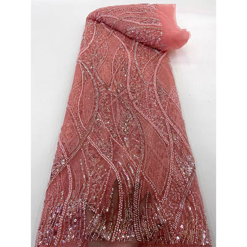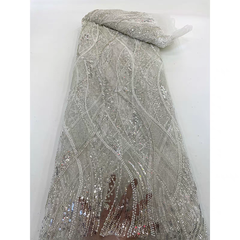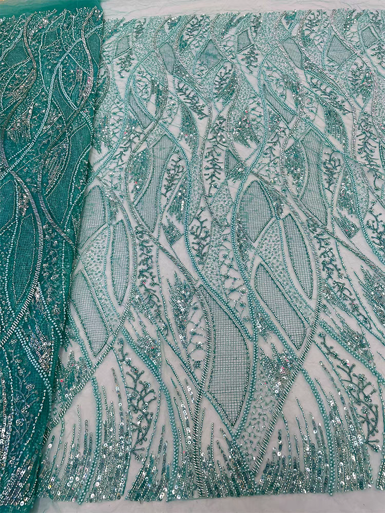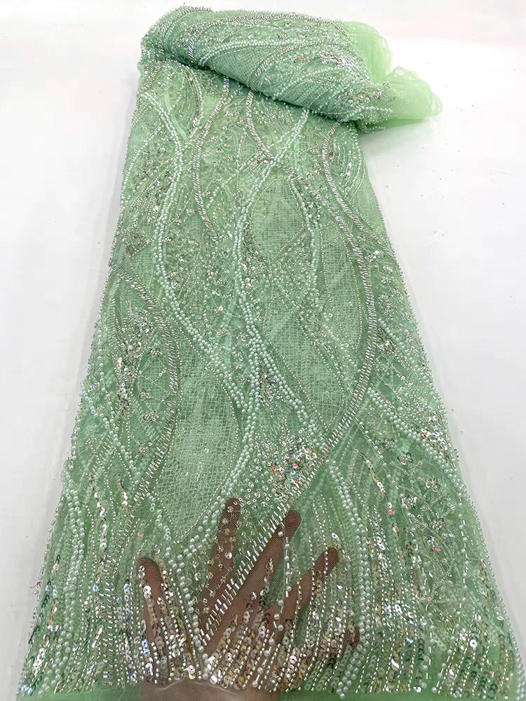 Lace mesh fabric green beaded sequins beaded embroidery fabric dress clothing wedding dress Five yards