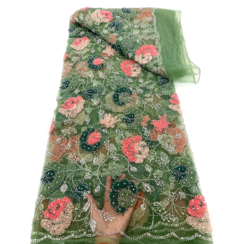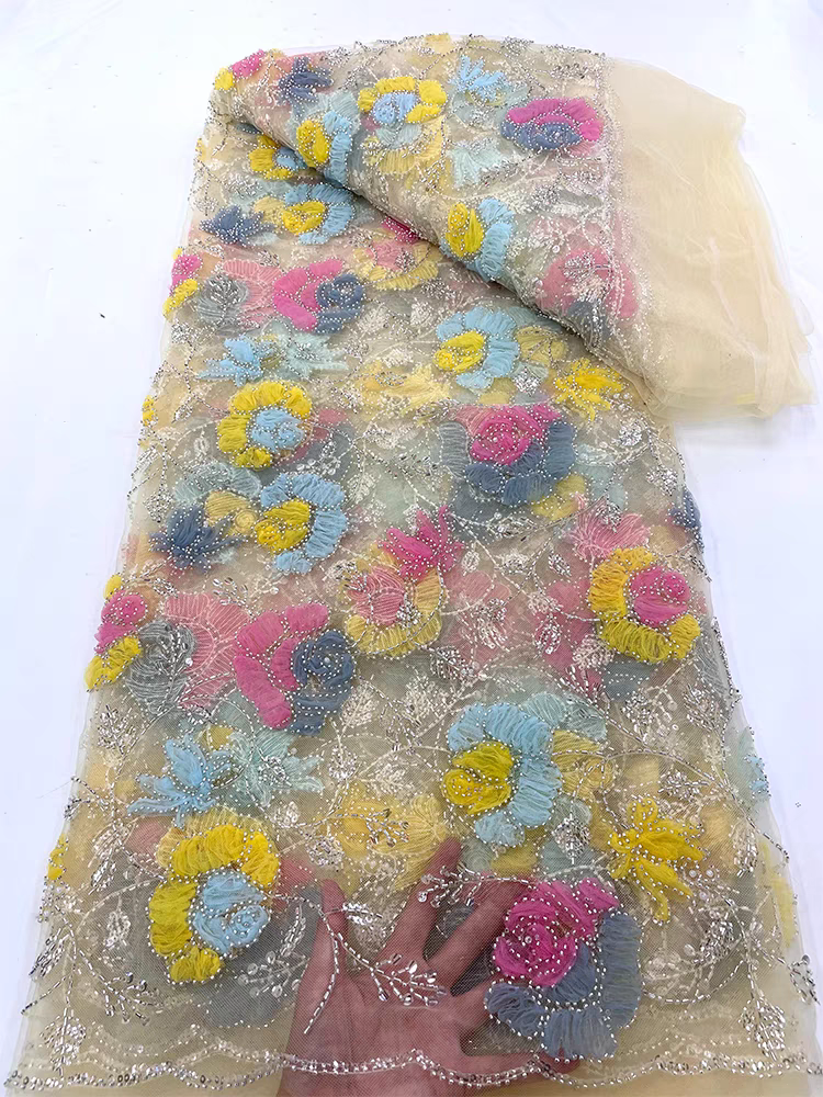 New spot apricot mesh fabric color bead tube embroidery bubble beads sequin embroidery fabric dress wedding dress children's clothing