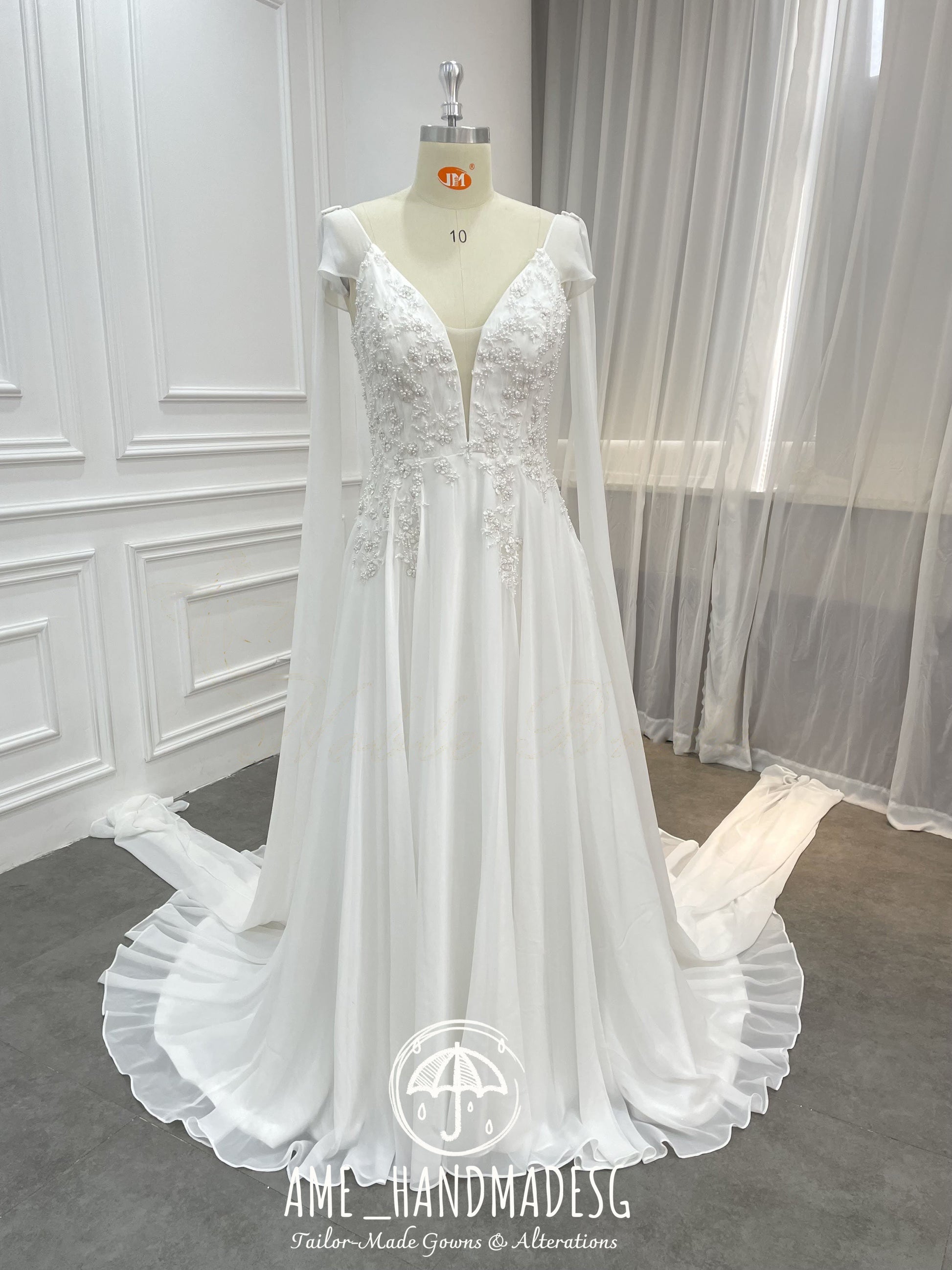 All dresses are made-to-order with customization services available. Enjoy free consultations and complimentary minor alterations. For more complex alterations, a fee will apply from our standard rates!