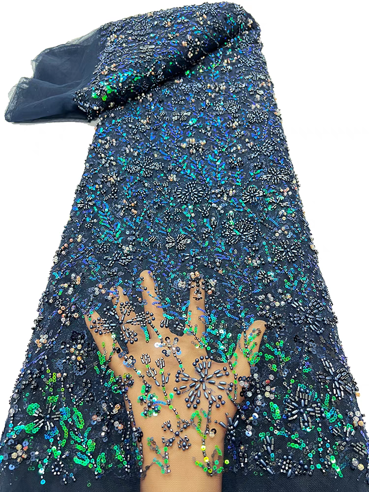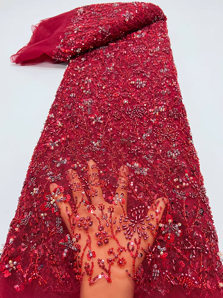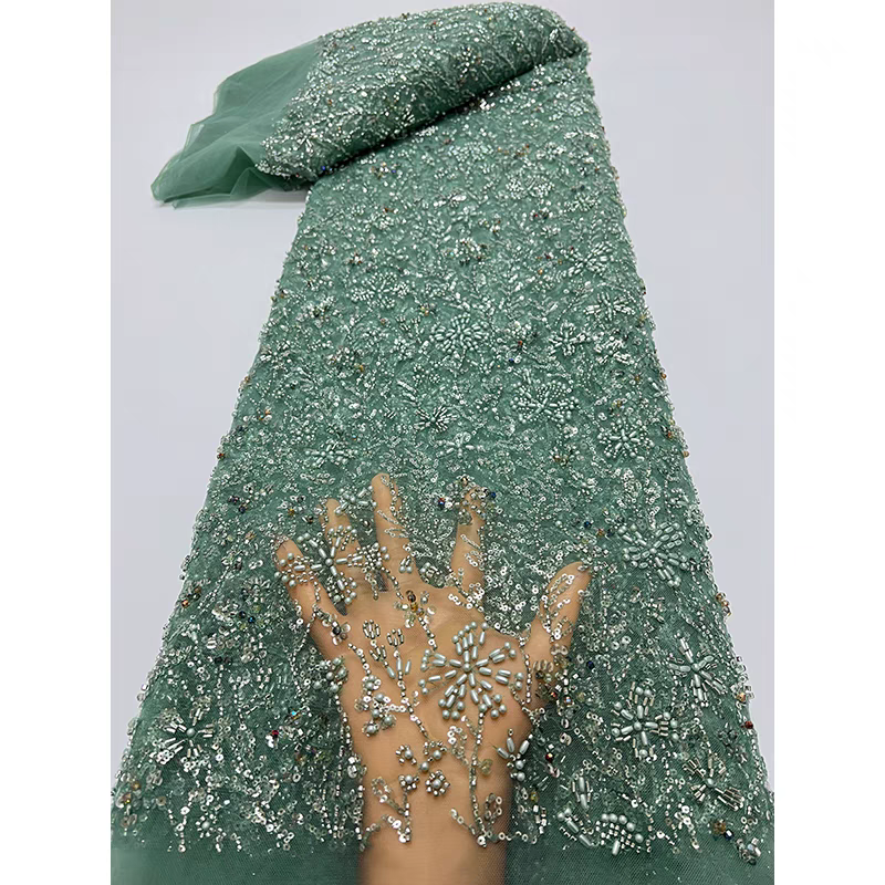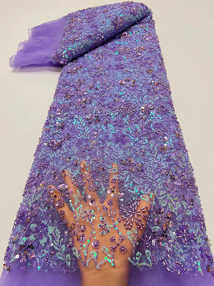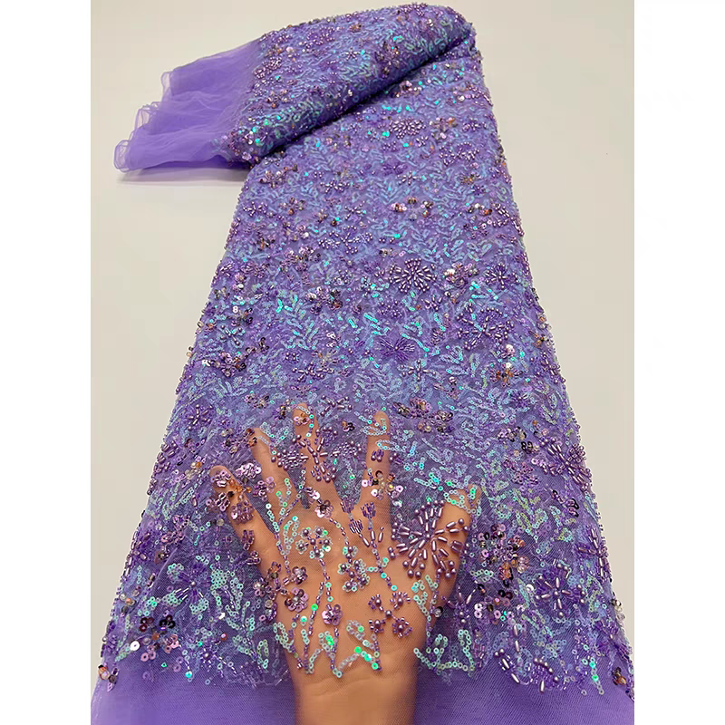 Ready-made mesh fabric, beaded tube embroidery, five-bead three-dimensional flower pattern, sequins, embroidered fabric, dress, wedding dress